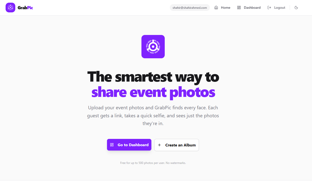 Event photo sharing app where hosts upload photos and share one link. Guests take a selfie to instantly find every photo they appear in using facial recognition. Three-service architecture with a Next.js frontend on Vercel, Spring Boot REST API on AWS App Runner, and a Python face detection worker on EC2. Photos upload directly to S3 via presigned URLs, face embeddings are stored in PostgreSQL with pgvector for cosine similarity search, and processing jobs flow through SQS. Secured with Supabase Auth, Upstash Redis rate limiting, and Cloudflare Turnstile bot protection.